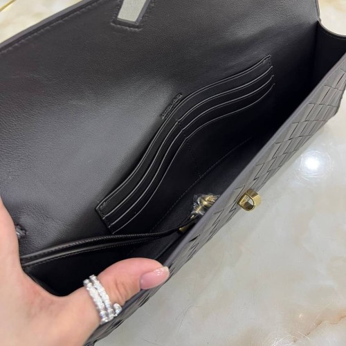 Черная сумка-клатч Bottega Veneta из натуральной кожи. Клапан обеспечивает надежную защиту содержимого, а фурнитура долговечность сумки. Идеальный выбор для тех, кто ценит стиль, качество и функциональность. В нашем интернет-магазине вы можете купить копии сумок с доставкой по Москве и по всей России.