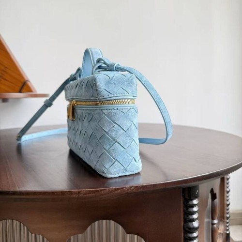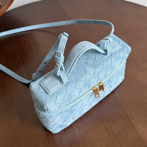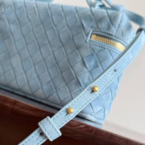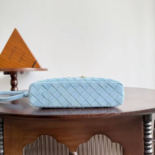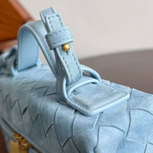 Голубая сумка Bottega Veneta из натуральной замши. Лаконичную сумку в стиле old money украсили фурнитурой в золотистом цвете. Сочетайте сумку с офисными костюмами или с базовым гардеробом для создания расслабленных образов. В нашем интернет-магазине вы можете купить копии сумок с доставкой по Москве и по всей России.