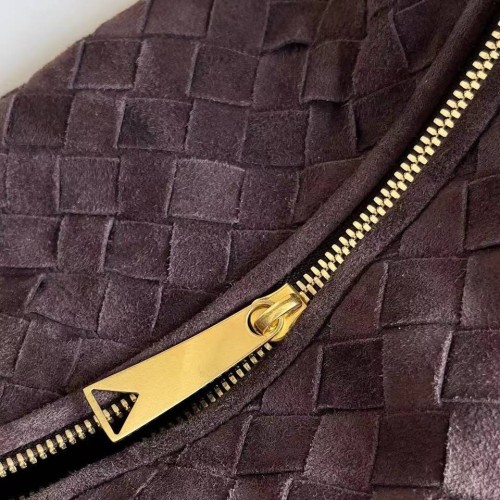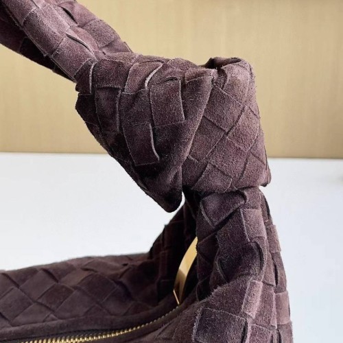Плетенная сумка Bottega Veneta шоколадного оттенка из натуральной замши. Модель Jodie воплощает в себе фирменные коды Bottega Veneta благодаря узлу и мягкой коже Intrecciato. Ее эластичная и округлая форма хобо разработана таким образом, чтобы комфорт и удобство отражали настроение владелицы. В нашем интернет-магазине вы можете купить копии сумок с доставкой по Москве и по всей России.