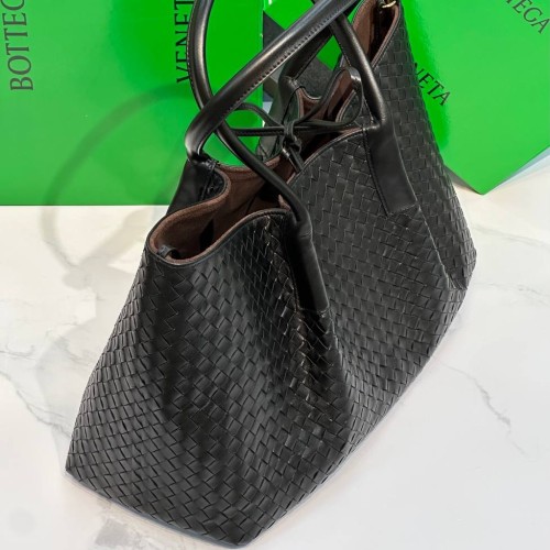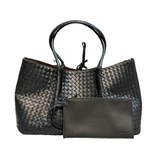 Черная сумка Bottega Veneta из натуральной кожи. Универсальная форма, акцентные ручки и элегантная узнаваемое плетение - каждая деталь подчеркивает выразительность модели. Идеальное решение для делового гардероба, двухсторонняя сумка будет уместна почти в любых повседневных стилизациях. В нашем интернет-магазине вы можете купить копии сумок с доставкой по Москве и по всей России.