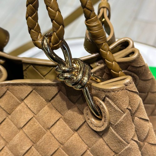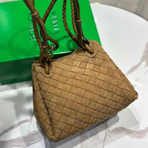 Бежевая сумка Bottega Veneta из натуральной замши. Аксессуар, который гармонично сочетает в себе элегантность, практичность и фирменный стиль модного дома. Эта модель идеально подходит для современных женщин, ценящих утончённый дизайн и функциональность. В нашем интернет-магазине вы можете купить копии сумок с доставкой по Москве и по всей России.
