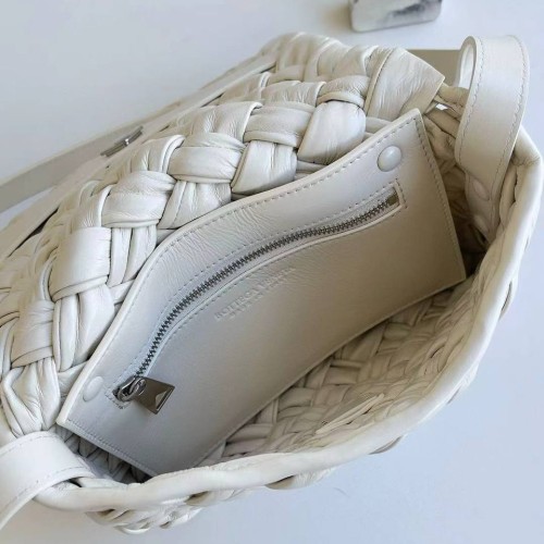 Белая сумка Bottega Veneta из натуральной кожи. Современность и универсальность: сумка из новой коллекции, которая идеально дополнит насыщенные дни. Благодаря лаконичному дизайну и геометричным линиям модель дополнит разные стили в зависимости от вашего прочтения. В нашем интернет-магазине вы можете купить копии сумок с доставкой по Москве и по всей России.