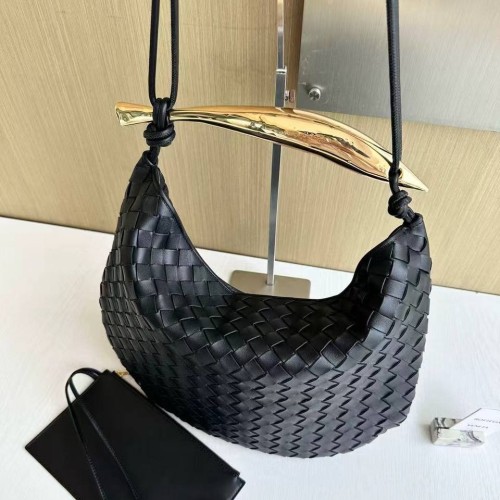 Черная сумка Bottega Veneta из натуральной кожи. Воплощение утончённого стиля и культовой классики. Дизайнеры объединили знаменитое плетение и скульптурную металлическую ручку что позволяет легко интегрировать модель в разные образы. В нашем интернет-магазине вы можете купить копии сумок с доставкой по Москве и по всей России.