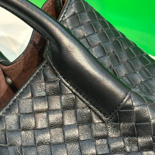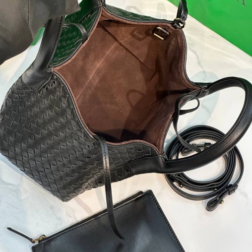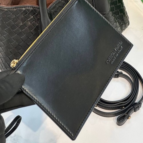 Черная сумка Bottega Veneta из натуральной кожи. Универсальное прочтение узнаваемого силуэта сумки-тоута. Модель можно носить на короткой ручке или длинном ремне в комплекте, чтобы гармонично вписать ее в любой образ. В нашем интернет-магазине вы можете купить копии сумок с доставкой по Москве и по всей России.