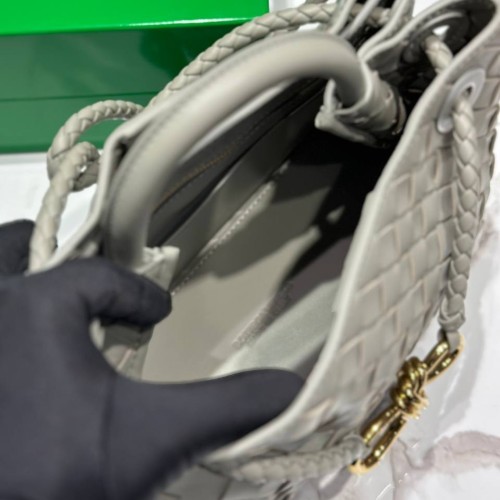 Стильная серая сумка Bottega Veneta из натуральной кожи. Оригинальная мягкая форма, приятный цвет и элегантная фурнитура в золотом цвете - особенности, которые позволяют модели быть универсальной и выразительной одновременно. Сумка станет постоянным спутником как вечерних, так и повседневных образов. В нашем интернет-магазине вы можете купить копии сумок с доставкой по Москве и по всей России.
