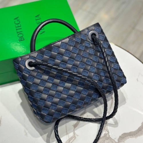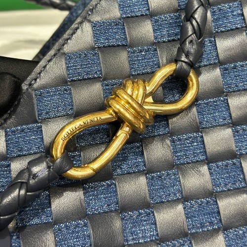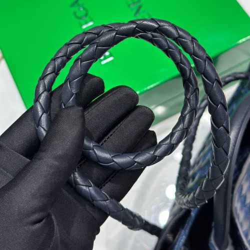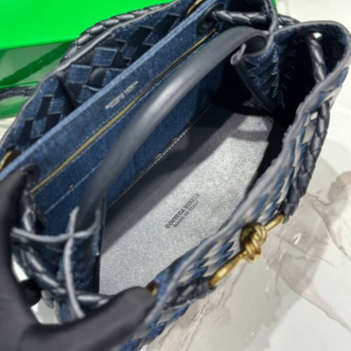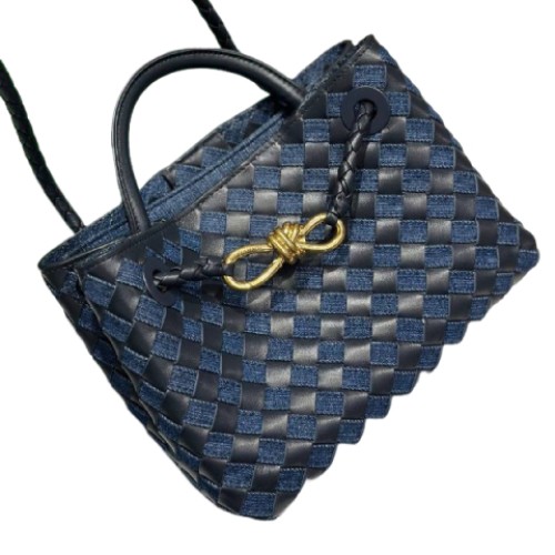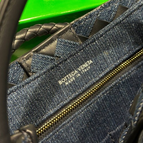 Сине-черная сумка Bottega Veneta из натуральной кожи и денима. Аксессуар обладает классическим силуэтом с характерным плетением и ручками, что делает ее не только стильным аксессуаром, но и удобным предметом для хранения всех необходимых вещей. Внутреннее пространство организовано так, чтобы обеспечить легкий доступ к вашим вещам. В нашем интернет-магазине вы можете купить копии сумок с доставкой по Москве и по всей России.
