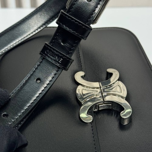 Черная сумка Celine из натуральной кожи. Культовая сумка в актуальном исполнении - идеальное решение для повседневных выходов. Классический силуэт и округлая форма дополняют лаконичный дизайн. Мягкий ремень комфортно сидит на плече и легко регулируется по длине. В нашем интернет-магазине вы можете купить копии сумок с доставкой по Москве и по всей России.
