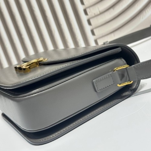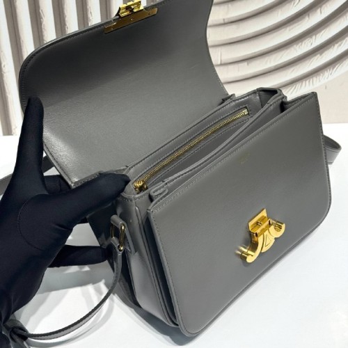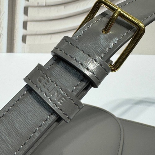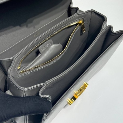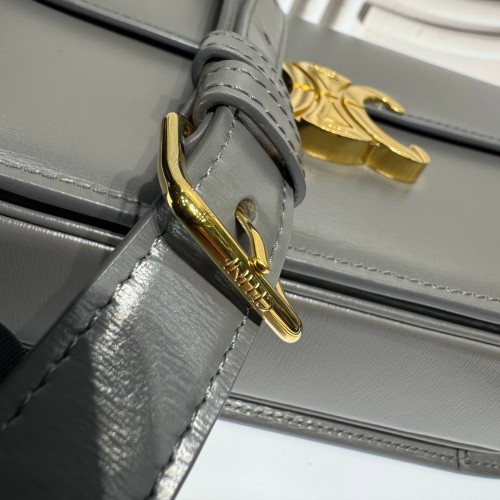 Серая сумка Celine из натуральной кожи. Геометричная форма и жесткий корпус придают сумке деловое прочтение, а натуральная кожа серого цвета в сочетании с золотистой фурнитурой – выразительность. В модели предусмотрен длинный ремень, чтобы вы могли носить сумку удобным способом. В нашем интернет-магазине вы можете купить копии сумок с доставкой по Москве и по всей России.