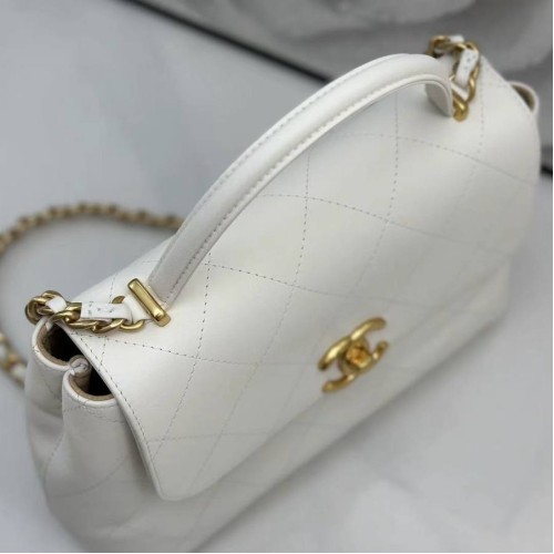 Белая сумка Chanel из натуральной кожи. Пример того, как аксессуар может стать центральным элементом образа и выразить индивидуальность владелицы. Элегантная сумка имеет плоскую стеганую отделку, перекликающуюся с винтажными моделями. В нашем интернет-магазине вы можете купить копии сумок с доставкой по Москве и по всей России.