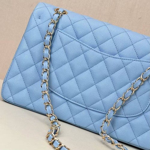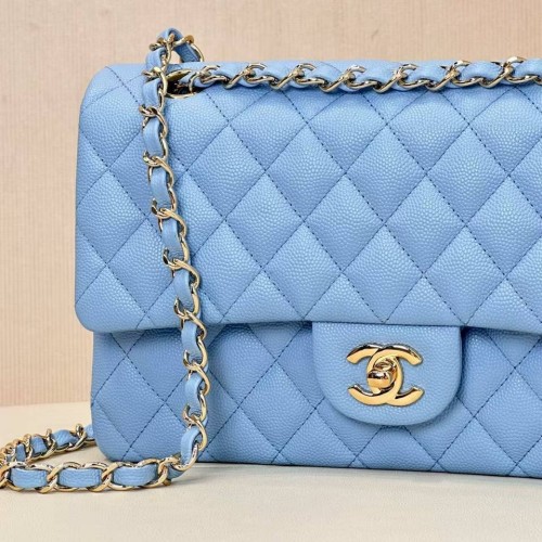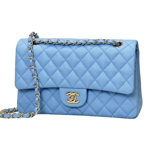 Голубая сумка премиум качества Chanel из натуральной кожи. Воплощение непринужденного шикарного стиля. Золотая цепочка позволяет экспериментировать со стилизациями и увеличивает функциональность. В нашем интернет-магазине вы можете купить копии сумок с доставкой по Москве и по всей России.