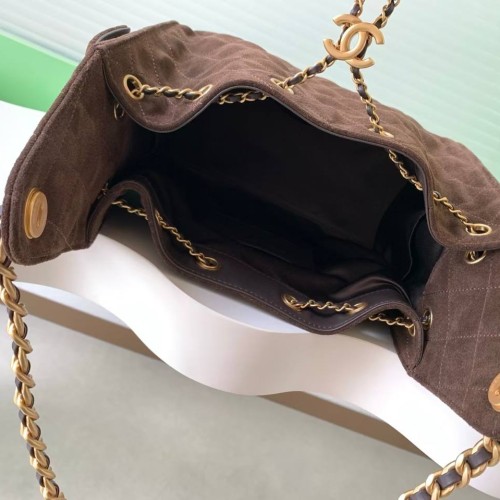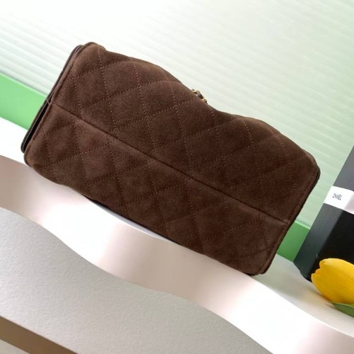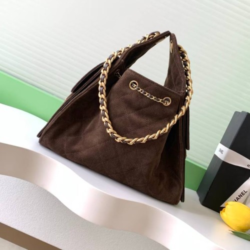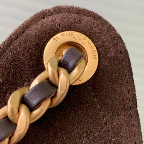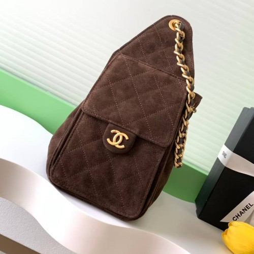 Коричневая сумка Chanel из натуральной замши. Культовая сумка-хобо в актуальном исполнении - идеальное решение для повседневных выходов. Классический силуэт и округлая форма дополняют лаконичный дизайн. В нашем интернет-магазине вы можете купить копии сумок с доставкой по Москве и по всей России.