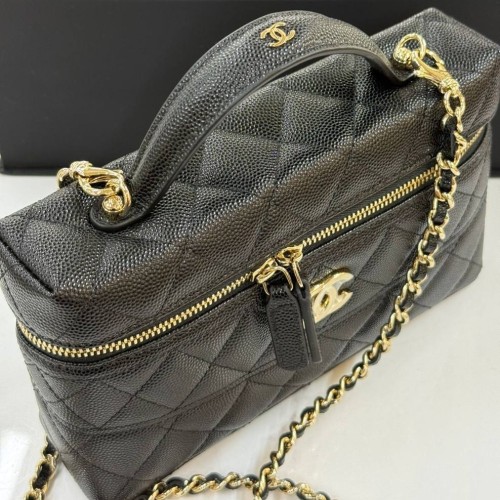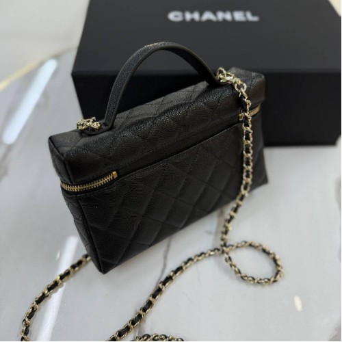 Черная сумка Chanel из натуральной кожи. одна из самых элегантных моделей в новой коллекции. Актуальная форма и жесткий корпус придают сумке деловое прочтение, а натуральная кожа благородного черного оттенка в сочетании с золотой фурнитурой – выразительность. В модели предусмотрены короткая ручка и длинный ремень-цепочка, чтобы вы могли носить сумку любым удобным способом. В нашем интернет-магазине вы можете купить копии сумок с доставкой по Москве и по всей России.