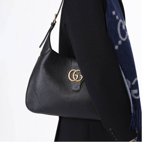 Черная сумка Gucci из натуральной кожи. Практичность и актуальность объединились в дизайне сумки из новой коллекции. Минималистичная конструкция и лаконичный дизайн позволяют перенести фокус внимания на материал и центральную деталь - пряжку GG в золотом цвете. В нашем интернет-магазине вы можете купить копии сумок с доставкой по Москве и по всей России.