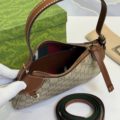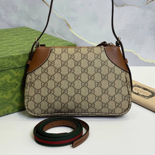 Коричнево-бежевая сумка Gucci из канвы и натуральной кожи. Этот компактный и в то же время удобный аксессуар позволяет всегда иметь под рукой все необходимые средства. Надёжная застёжка на молнии предотвратит случайное открывание сумки даже в экстремальных ситуациях. Незаменимая вещь в подарок и для личного использования. В нашем интернет-магазине вы можете купить копии сумок с доставкой по Москве и по всей России.