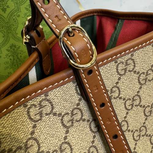 Коричнево-бежевая сумка Gucci из канвы и натуральной кожи. Акцентный принт, цветовое сочетание и геометричная форма - особенности, которые делают сумку завершающим акцентом ваших образов. Для удобства и экспериментов со стилизациями модель дополнена длинным ремнем. В нашем интернет-магазине вы можете купить копии сумок с доставкой по Москве и по всей России.