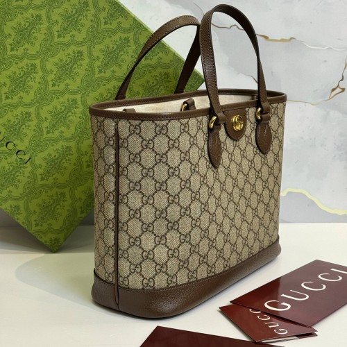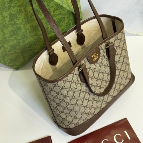 Коричнево-бежевая сумка Gucci из канвы и натуральной кожи. Сумка-тоут Ophidia от Gucci, предназначенная для ношения как с верхней ручкой, так и на плече, имеет двойные кожаные ручки и удлиненные плечевые ремни для максимального удобства. Изготовленная из бежевой и черной канвы GG Supreme, золотистая буква Double G остается неотъемлемой частью дизайна. В нашем интернет-магазине вы можете купить копии сумок с доставкой по Москве и по всей России.