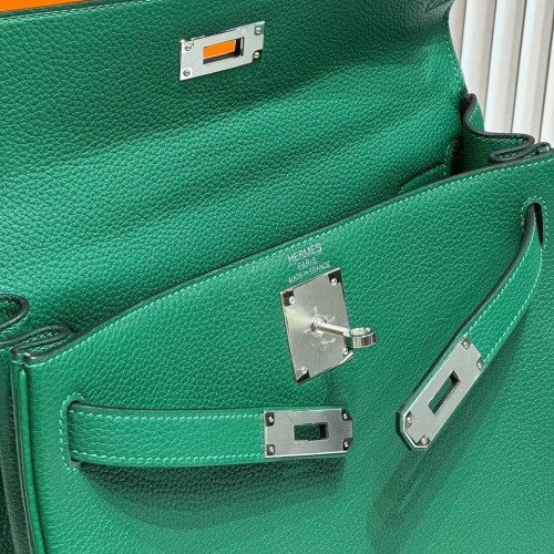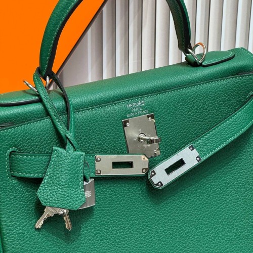 Зеленая сумка Hermes из натуральной кожи. Идеальное решение на каждый день. Носите сумку на съемном длинном ремне или в руках как модные героини фильмов и хроник. В нашем интернет-магазине вы можете купить копии сумок с доставкой по Москве и по всей России.