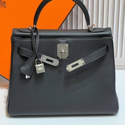 Черная сумка Hermes из натуральной кожи. Геометричная форма и жесткий корпус придают сумке деловое прочтение, а натуральная кожа черного цвета в сочетании с фурнитурой – выразительность. В модели предусмотрены короткая ручка и длинный ремень, чтобы вы могли носить сумку любым удобным способом. В нашем интернет-магазине вы можете купить копии сумок с доставкой по Москве и по всей России.