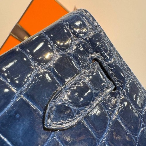 Синяя сумка Hermes из лакированной кожи аллигатора. Модель создана на стыке трендов и функциональности. В новой коллекции выполнили изделие из натуральной кожи крокодила в классическом синем цвете. Сумка станет постоянным спутником как вечерних, так и повседневных образов. В нашем интернет-магазине вы можете купить копии сумок с доставкой по Москве и по всей России.