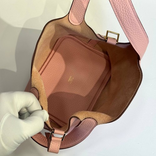 Розовая сумка Hermes из натуральной кожи. Лаконичную сумку в стиле old money украсили фурнитурой в золотистом цвете. Сочетайте сумку с офисными костюмами или с базовым гардеробом для создания расслабленных образов. В нашем интернет-магазине вы можете купить копии сумок с доставкой по Москве и по всей России.