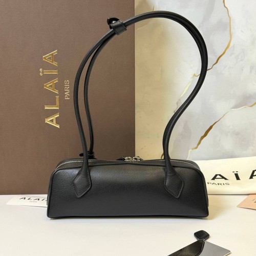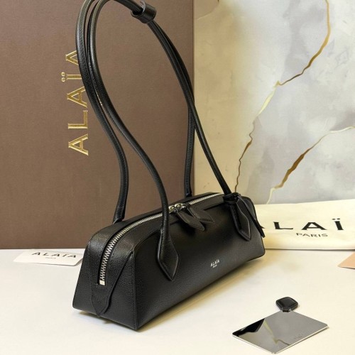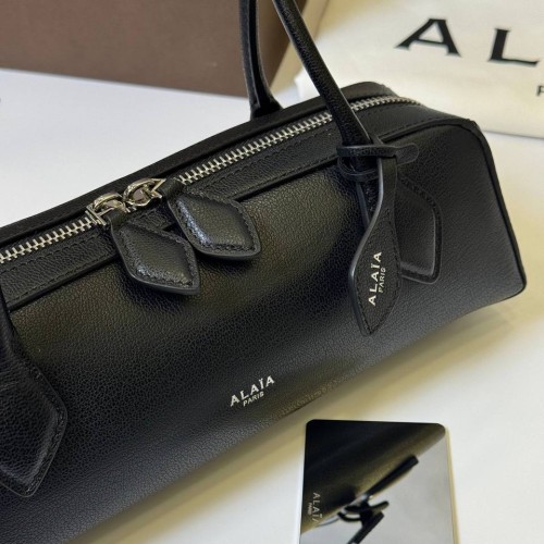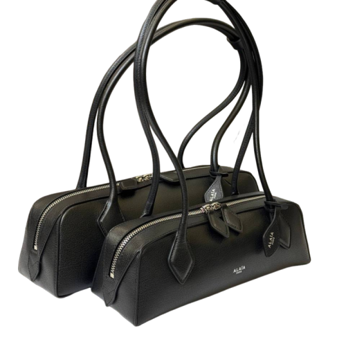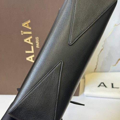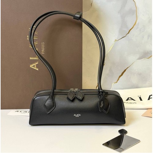 Черная сумка Alaia из натуральной кожи. Лаконичный силуэт с четкими линиями и вместительная форма делают модель удобной для повседневных дел и рабочих встреч. Сумку можно носить не только в руках, но и на плече. Серебристая фурнитура подчеркивает оттенок материала, а застежка на молнию обеспечивает комфорт в использовании. В нашем интернет-магазине вы можете купить копии сумок с доставкой по Москве и по всей России.