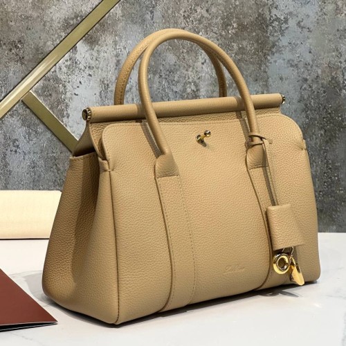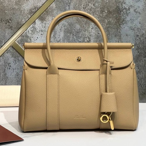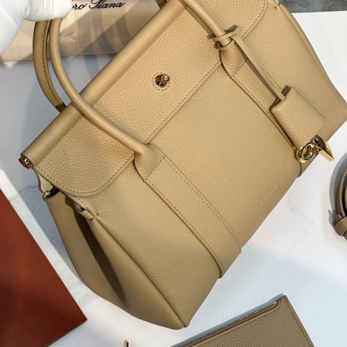 Бежевая сумка Loro Piana из натуральной кожи. Кольцевая застежка позволяет носить сумку открытой для более непринужденного стиля или закрытой для более изысканного образа. Аксессуар можно носить на плече или в руке. В нашем интернет-магазине вы можете купить копии сумок с доставкой по Москве и по всей России.