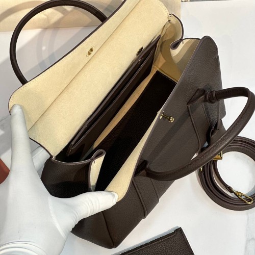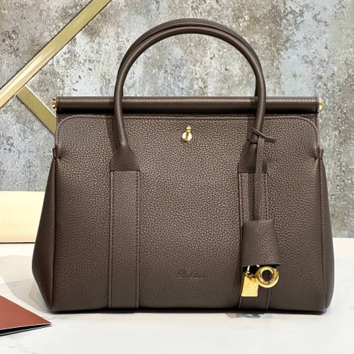 Элегантная сумка Loro Piana шоколадного оттенка из натуральной кожи. Геометричная форма придает сумке деловое прочтение, а натуральная кожа благородного шоколадного оттенка в сочетании с золотой фурнитурой – выразительность. В модели предусмотрены короткие ручки и длинный ремень, чтобы вы могли носить сумку любым удобным способом. В нашем интернет-магазине вы можете купить копии сумок с доставкой по Москве и по всей России.