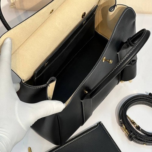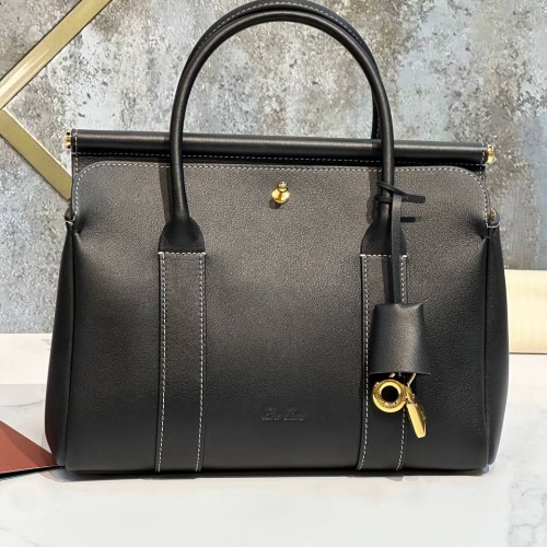 Черная сумка Loro Piana из натуральной кожи. Модель станет заметным дополнением для ваших образов благодаря сочетанию акцентной формы, насыщенного цвета и актуальных деталей. Сделайте сумку главной героиней в сдержанных сочетаниях или гармоничным продолжением ярких решений. В нашем интернет-магазине вы можете купить копии сумок с доставкой по Москве и по всей России.
