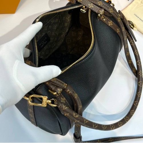 Черная сумка Louis Vuitton из натуральной кожи. Геометричная форма и жесткий корпус придают сумке яркое прочтение, а натуральная кожа черного цвета в сочетании с золотистой фурнитурой и вставками Monogramm – выразительность. В модели предусмотрен длинный ремень, чтобы вы могли носить сумку удобным способом. В нашем интернет-магазине вы можете купить копии сумок с доставкой по Москве и по всей России.