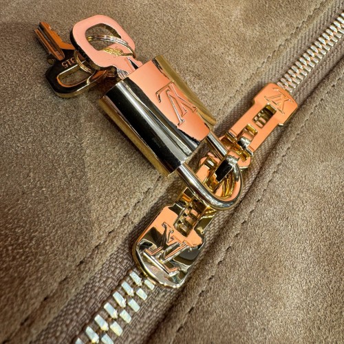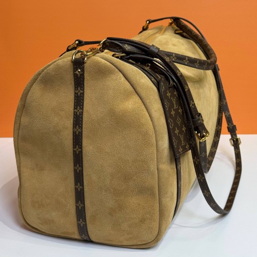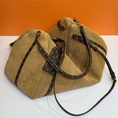 Коричневая сумка Louis Vuitton из натуральной замши. Сумка Express Travel с подкладкой из текстиля с узором Monogram, сочетает в себе современный дизайн и классические материалы Louis Vuitton. Благодаря просторному внутреннему пространству аксессуар станет идеальным дополнением в путешествиях. В нашем интернет-магазине вы можете купить копии сумок с доставкой по Москве и по всей России.