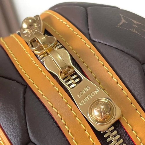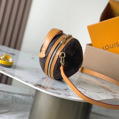 Коричневая сумка Louis Vuitton из натуральной кожи Monogram. Эксклюзивная сумка в виде футбольного мяча была представлена на показе коллекции Весна-Лето 2025. Сумку можно носить через плечо или в руке. В нашем интернет-магазине вы можете купить копии сумок с доставкой по Москве и по всей России.