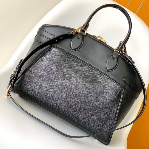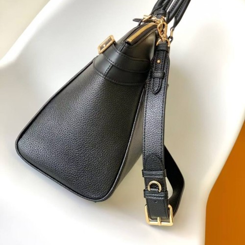 Черная сумка Louis Vuitton из натуральной кожи. Современный дизайн и лаконичный стиль делают этот аксессуар универсальным выбором для любого образа. Сумка-тоут с шарнирными ручками и съёмным ремнём предлагает различные варианты ношения. В нашем интернет-магазине вы можете купить копии сумок с доставкой по Москве и по всей России.