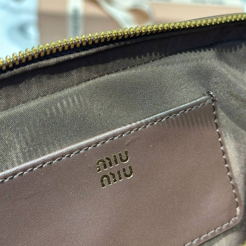 Коричневая сумка Miu Miu из натуральной кожи. Качественная текстура кожи отражает свет, а лаконичный силуэт делает модель универсальной. Носите аксессуар на коротких ручках или с ремнем через плечо - и пусть аксессуар расскажет о вашем чувстве стиля. В нашем интернет-магазине вы можете купить копии сумок с доставкой по Москве и по всей России.