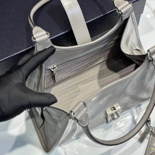 Серая сумка Prada из натуральной кожи. В современном городском ритме сумка должна не просто дополнять образ, но и вписываться в повседневный режим многозадачности. Аксессуар идеально подойдет как для прогулки, так и для деловой встречи или работы, при этом сохранит свободу движений. В нашем интернет-магазине вы можете купить копии сумок с доставкой по Москве и по всей России.
