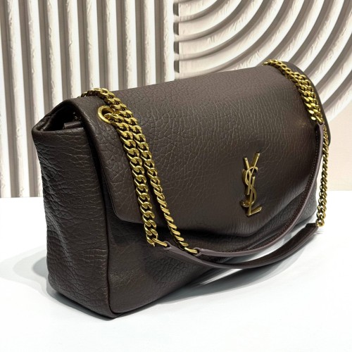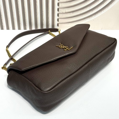 Коричневая сумка Saint Laurent из натуральной кожи. Благодаря лаконичному дизайну аксессуар станет отличным спутником для деловых образов. За счет мягкой формы и актуального силуэта сумка будет легко сочетаться с образами для вечеринок или прогулок с подругами. В нашем интернет-магазине вы можете купить копии сумок с доставкой по Москве и по всей России.