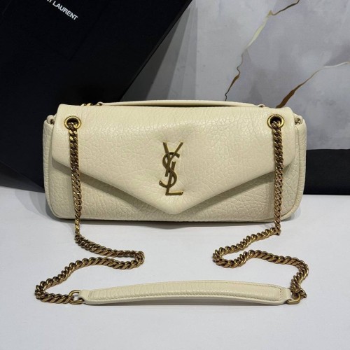 Белая сумка Saint Laurent из натуральной кожи. Сумка воплощает сдержанную изысканность бренда благодаря фирменной коже. Её узнаваемая форма гармонично сочетает элегантность и лёгкость, а ручка и удобная цепочка обеспечивают практичность в повседневной жизни. В нашем интернет-магазине вы можете купить копии сумок с доставкой по Москве и по всей России.