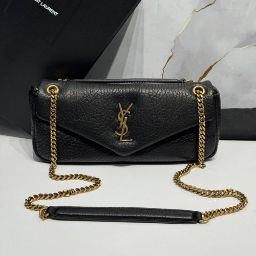 Черная сумка Saint Laurent из натуральной кожи. Воплощение утончённого стиля и культовой классики. Изделие выполнено из высококачественной чёрной кожи и украшено легендарной фурнитурой с логотипом бренда цвета золота. В нашем интернет-магазине вы можете купить копии сумок с доставкой по Москве и по всей России.