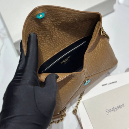 Стильная сумка Saint Laurent коричневого оттенка из натуральной кожи. Небольшая, но достаточно вместительная модель выделяется благодаря длинной цепочке. Эта цепочка выглядит очень эффектно, но при этом она удивительно легкая. В нашем интернет-магазине вы можете купить копии сумок с доставкой по Москве и по всей России.