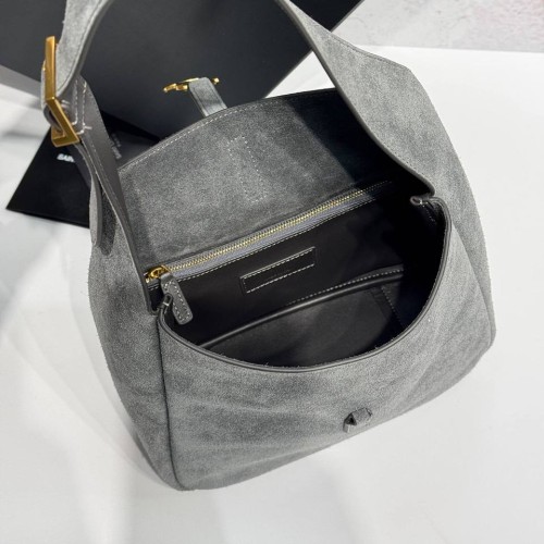 Серая сумка Saint Laurent из натуральной замши. Компактный размер, продуманная внутренняя организация и лаконичный дизайн - каждая деталь сумки из новой коллекции делает ее идеальным спутником для вечерних и повседневных образов. Для удобства и экспериментов со стилизациями модель дополнена длинным ремнем. В нашем интернет-магазине вы можете купить копии сумок с доставкой по Москве и по всей России.