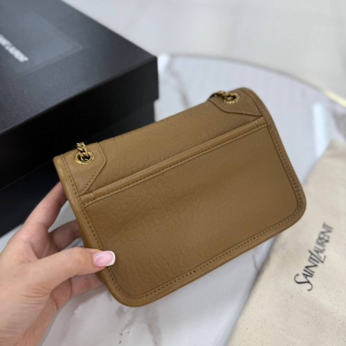 Коричневая сумка Saint Laurent из натуральной кожи. Классика в современном прочтении. В элегантной сумке предусмотрена длинная цепочка для вариаций ношения. В нашем интернет-магазине вы можете купить копии сумок с доставкой по Москве и по всей России.