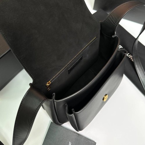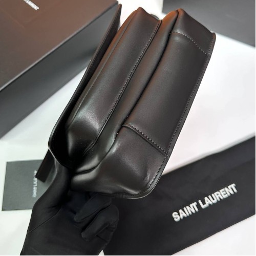Черная сумка Saint Laurent из натуральной кожи. Изящные линии этой модели выгодно подчеркнут вашу женственность и индивидуальность. Удобный размер позволяет уместить все необходимое в течение дня. В нашем интернет-магазине вы можете купить копии сумок с доставкой по Москве и по всей России.