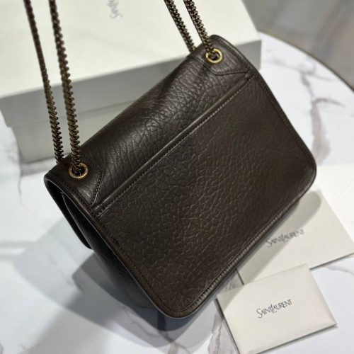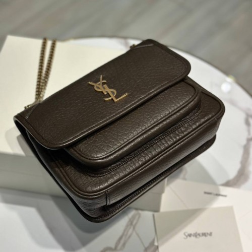 Коричневая сумка Saint Laurent из натуральной кожи. Сумка обладает классическим силуэтом с характерной застежкой и длинной цепочкой, что делает ее не только стильным аксессуаром, но и удобным предметом для хранения всех необходимых вещей. Внутреннее пространство организовано так, чтобы обеспечить легкий доступ к вашим вещам. В нашем интернет-магазине вы можете купить копии сумок с доставкой по Москве и по всей России.