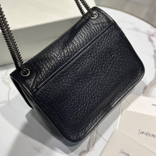 Черная сумка Saint Laurent из натуральной кожи. Уникальная текстура и одновременно легкость сумки, выполненной из эксклюзивной кожи ягненка не оставит вас равнодушной. Внутреннее пространство организовано так, чтобы обеспечить легкий доступ к вашим вещам. В нашем интернет-магазине вы можете купить копии сумок с доставкой по Москве и по всей России.