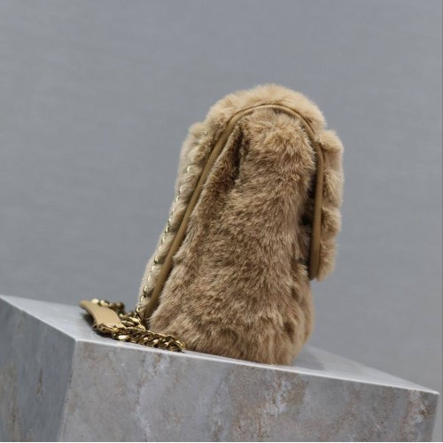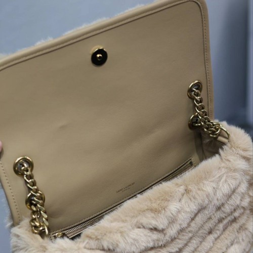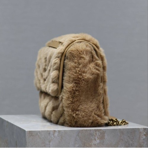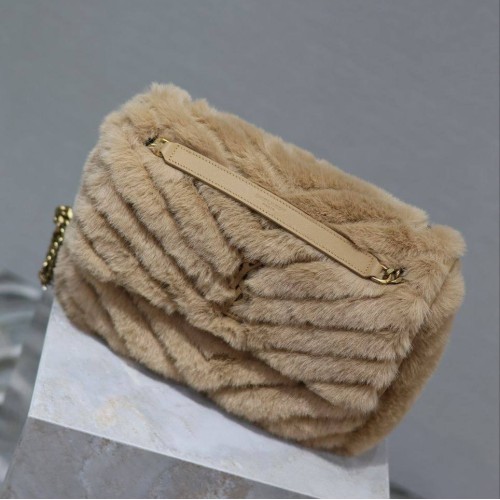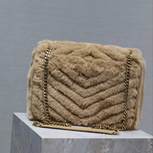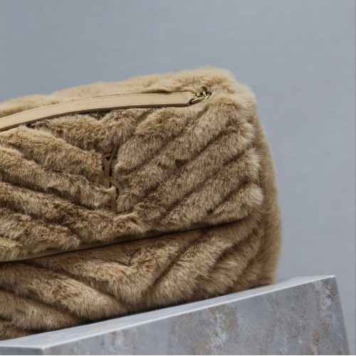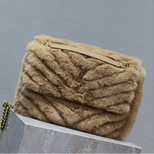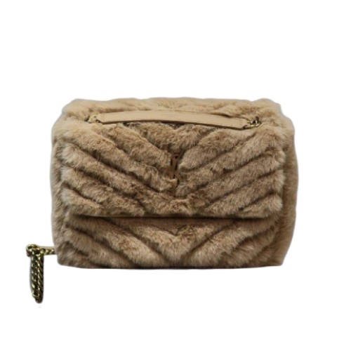 Коричневая сумка Saint Laurent из натуральной кожи и натурального меха. Оригинальная модель дополнена стеганным узором. Удобная цепочка позволяет носить сумку как на плече, так и в руке, обеспечивая максимальный комфорт. В нашем интернет-магазине вы можете купить копии сумок с доставкой по Москве и по всей России.