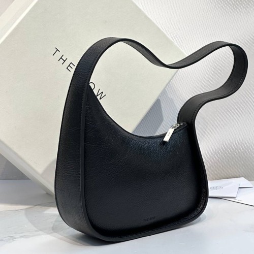 Черная сумка The Row из натуральной кожи. Незаменимый спутник активных и стильных будней. Аксессуар разработан с фокусом на удобство в ежедневных образах. Сочетайте сумку с офисными костюмами для создания официальных образов или с расслабленными джинсами для баланса стилей. В нашем интернет-магазине вы можете купить копии сумок с доставкой по Москве и по всей России.