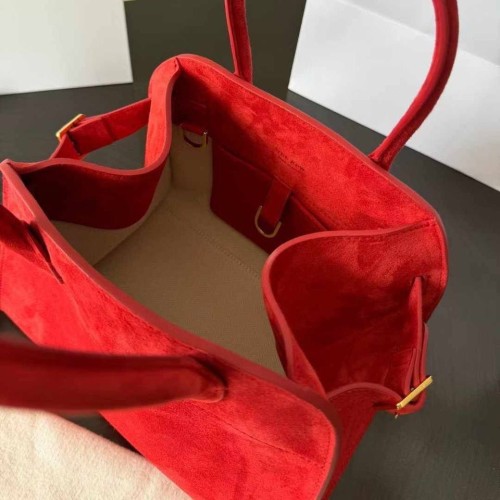Красная сумка The Row из натуральной замши. Классическая геометричная сумка - вечно актуальный и универсальный выбор. Яркий цвет, оптимальный средний размер, лаконичный дизайн - совокупность решений делает модель подходящей под любой образ. В нашем интернет-магазине вы можете купить копии сумок с доставкой по Москве и по всей России.