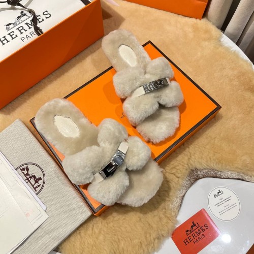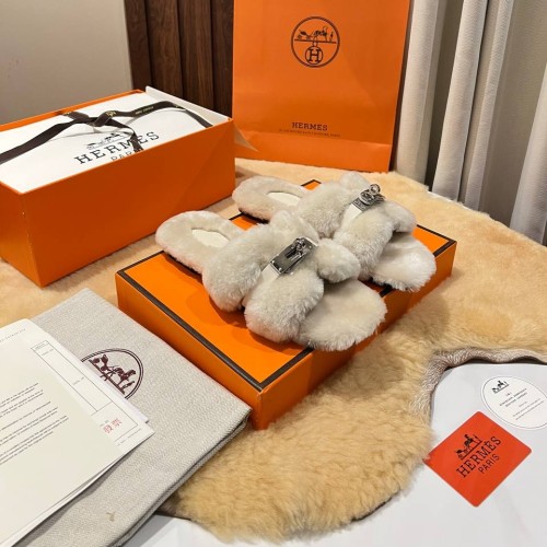 Белые тапочки Hermes из натурального меха. Тапочки, которые можно интегрировать в самые разные образы. Дизайн-команда придала паре аккуратный силуэт, открытую носочную часть и монохромный дизайн, в котором даже миниатюрная пряжка выполнена в тон модели. Гибкая подошва завершается устойчивым каблуком, который равномерно распределяет нагрузку на стопу. В нашем интернет-магазине вы можете купить копии тапочек с доставкой по Москве и по всей России.