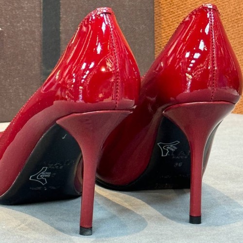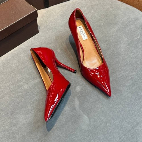 Яркие красные женские туфли Alaia из лакированной кожи. Стильный дизайн и красный цвет делают модель запоминающимся дополнением для ваших образов. Классическая пара имеет устойчивый тонкий каблук 9 см и стильную заостренную носочную часть. В нашем интернет-магазине вы можете купить копии туфель с доставкой по Москве и по всей России.