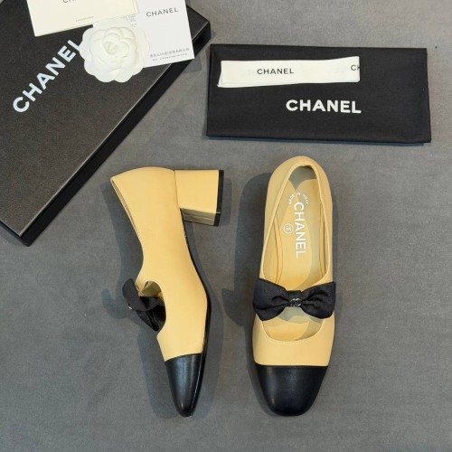 Бежевые женские туфли Chanel из натуральной кожи. Обувь, не теряющая своей актуальности. Элегантные туфли на устойчивом каблуке, высотой 5 см внесут в ваш образ завершающий штрих. Закругленный черный носок добавляет паре благородное прочтение. В нашем интернет-магазине вы можете купить копии туфель с доставкой по Москве и по всей России.