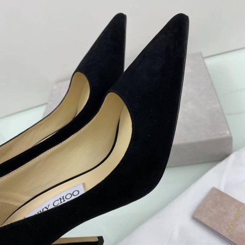 Черные женские туфли Jimmy Choo из натуральной замши. Туфли, созданные с особым вниманием к деталям и конструкции. Дизайнеры подчеркнули модель тонким каблуком, который эффектно контрастирует с узкой заостренной носочной частью. В нашем интернет-магазине вы можете купить копии туфель с доставкой по Москве и по всей России.